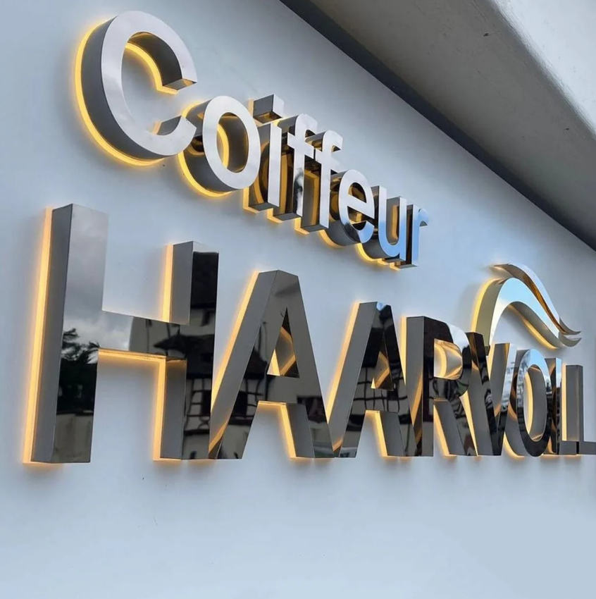 Reverse channel letters are often favored by luxury retail brands, boutique hotels, corporate offices, and fine dining establishments due to their refined and upscale look. Crafted from durable materials like aluminum and stainless steel, these signs are built to last—resisting corrosion, weather, and UV exposure. The halo glow offers a subtle yet powerful branding effect that stands out without overwhelming.